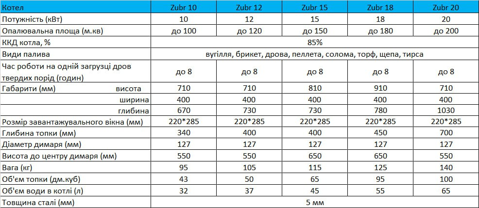 Надійні, економні та зручні в експлуатації котли для опалення приватних будинків, виробничих і складських приміщень. Серія ZUBR CLASSIC поєднує в собі простоту конструкції та високу ефективність згоряння дров, вугілля та інших видів твердого палива.