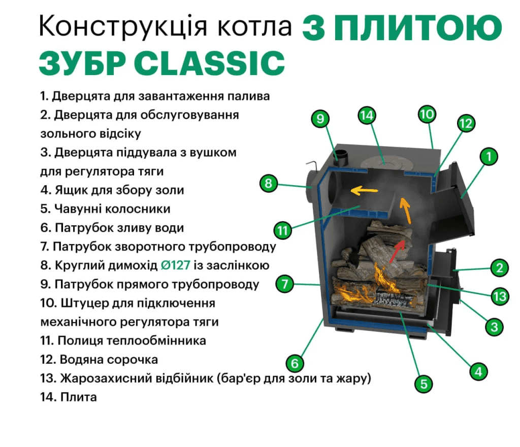 Твердопаливні котли Zubr Classic Termo з плитою 10