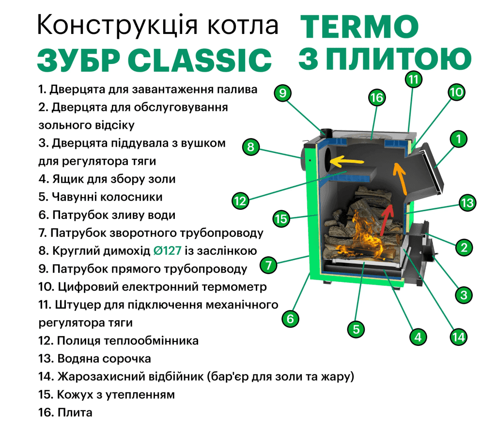 Твердопаливні котли Zubr Classic Termo з плитою 15