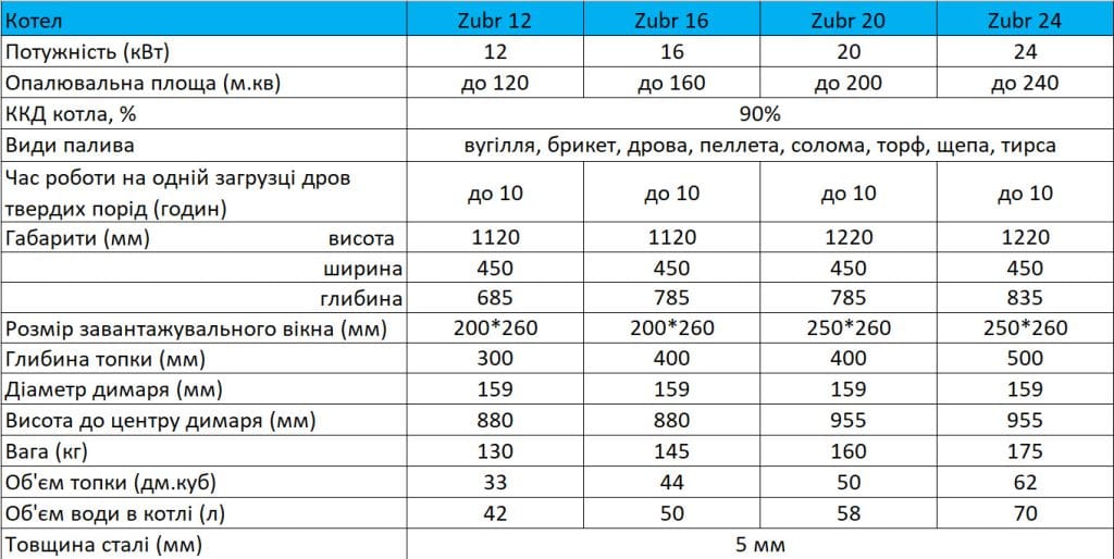 Твердопаливні котли Zubr Praktik