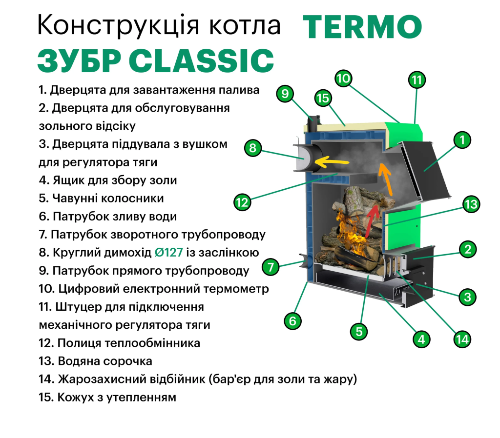 Надійні, ефективні та тепловтратно-оптимізовані котли для опалення приватних, виробничих і складських приміщень. Серія ZUBR CLASSIC TERMO оснащена додатковим шаром теплоізоляції, що зменшує теплові втрати, підвищує ефективність роботи та забезпечує стабільне збереження тепла. Ідеальне рішення для тих, хто цінує економію палива та стабільну температуру в приміщенні.